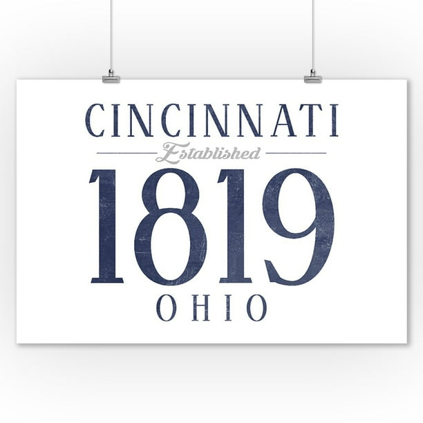 Cincinnati Ohio Established Date Blue Lantern Press Artwork 9x12 Art Print Wall Decor Travel Poster Walmart Com